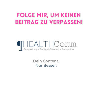 Für wen ist HEALTHComm geeignet? HEALTHComm ist ideal für Unternehmen und Selbstständige aus den Bereichen Gesundheit, Wellbeing, Coaching und Ernährung. Sie profitieren von nachhaltiger Kommunikation mit klaren Werten, die Vertrauen schafft und Wirkung zeigt.